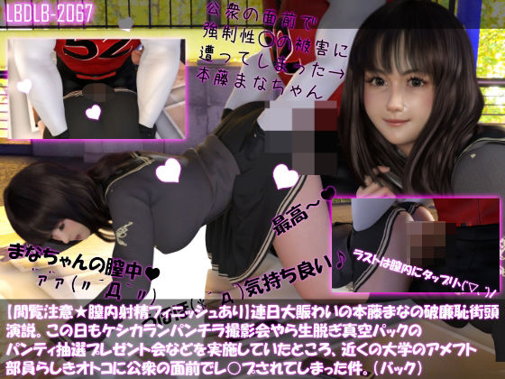 d_341088|【△100】【閲覧注意★膣内射精フィニッシュあり】連日大賑わいの本藤まなの破廉恥街頭演説。この日もケシカランパンチラ撮影会やら生脱ぎ真空パックのパンティ抽選プレゼント会などを実施していたところ、近くの大学のアメフト部員らしきオトコに公衆の面前でレ○プされてしまった件。(バック)|3DCG 動画・アニメーション 制服 学園もの 巨乳 ミニスカ 盗撮・のぞき お尻・ヒップ バイオレンス 脚 動画ファイル 男性向け 成人向け